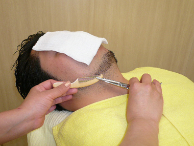 アフターケアシェービング後のお肌を気持ちのい〜いタオルで丁寧に拭き取ります。