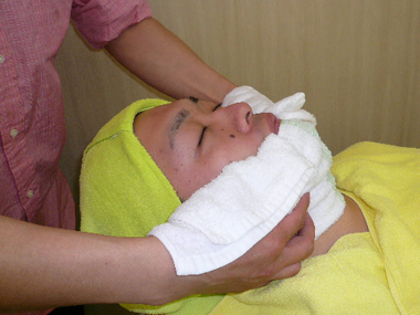アフターケアシェービング後のお肌を気持ちのい〜いタオルで丁寧に拭き取ります。